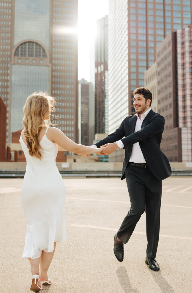 There’s something about downtown Dallas that just works for engagement photos—especially for couples who are drawn to timeless, classic imagery that won’t feel dated five, ten, or even twenty years from now.
