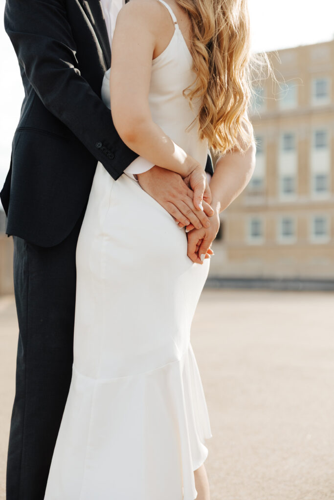 Light in downtown Dallas is incredibly dynamic. Between the tall buildings, you get pockets of soft, diffused light that wrap beautifully around couples. And as the sun starts to dip, the city takes on this warm glow that feels almost cinematic.
